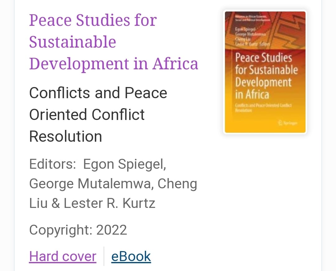 The first book “Peace Studies for Sustainable Development in Africa” is expected in March 2022 from Springer Nature. The cover page may be accessed by clicking here and the second manuscript is under review.